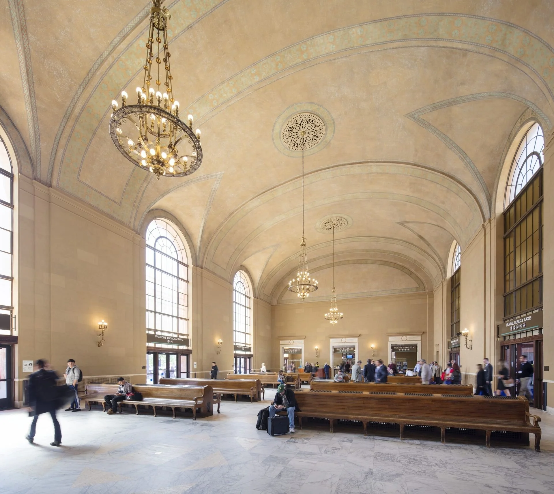 Sacramento Valley Station is a newly renovated, historic train station situated at the old train yards and across from the Golden 1 Center, home of the Sacramento Kings. Working collaboratively with the Sacramento Historical Preservation Society and in adherence of Amtrak standards, we developed an illuminated signage and wayfinding program that felt at home in and around the site of the turn-of-the-century building. Large scale Sacramento Valley Station signage greets arriving passengers and stadium-plaza viewers alike.